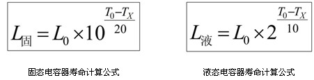 6.固態(tài)電解質(zhì)沒(méi)有揮發(fā)性,在使用中不易損失,因此使用壽命比液態(tài)電容器高出很多。液態(tài)鋁電容器遵循溫度每下降 10℃,壽命提高 2 倍的原則;固態(tài)鋁電容器則遵循溫度每下降20℃,壽命提高10倍的原則(如下表所示) 。